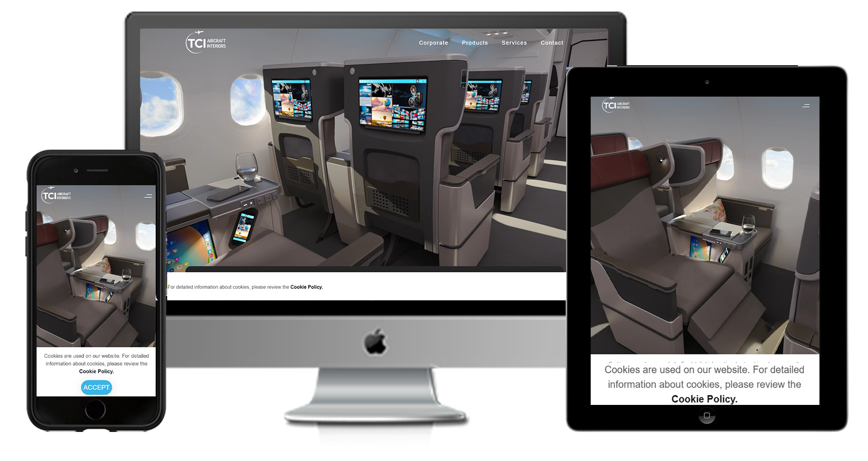 2023 yılında üç şirketin stratejik birleşmesiyle kurulan TCI Aircraft Interiors; uçak içi sistemler, koltuk ve eğlence teknolojileri alanında global havayollarına uçtan uca çözümler sunmaktadır. Markanın dijital kimliğini yansıtan özel yönetim panelli kurumsal web tasarım hizmeti verildi ve site genel SEO ayarları yapıldı.